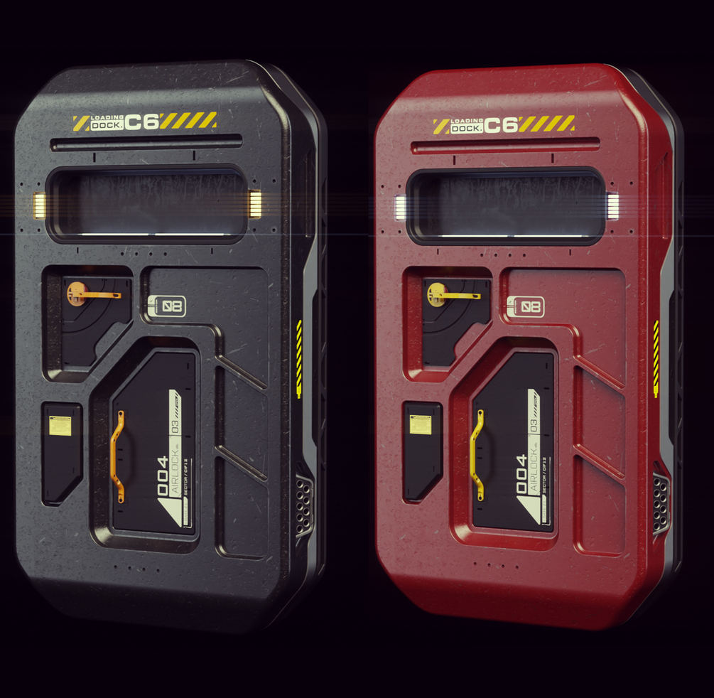 Two Highly detailed 3d model Sci-Fi Doors, Slides vertically, Modeled in MOI3D and textured in Octane for C4D Includes Texture Maps, Light Setup, FBX file for other DDC.