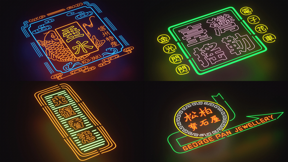A stylized and comprehensive set of hand-drawn neon signs with a hand-crafted look and feel based on long gone Hong Kong Brands that used to paint its streets with light for decades.