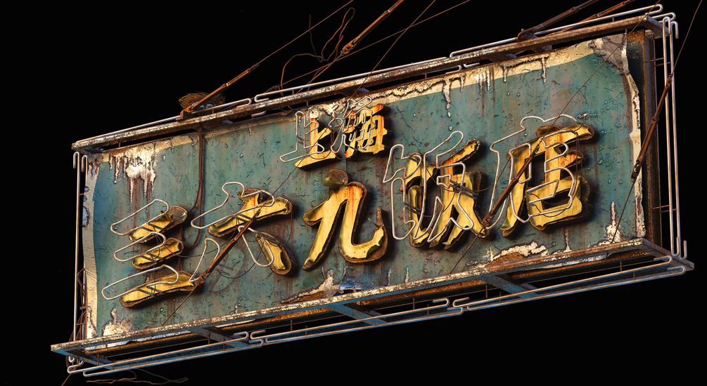 Shanghai Restaurant Neon Sign PBR 3d asset