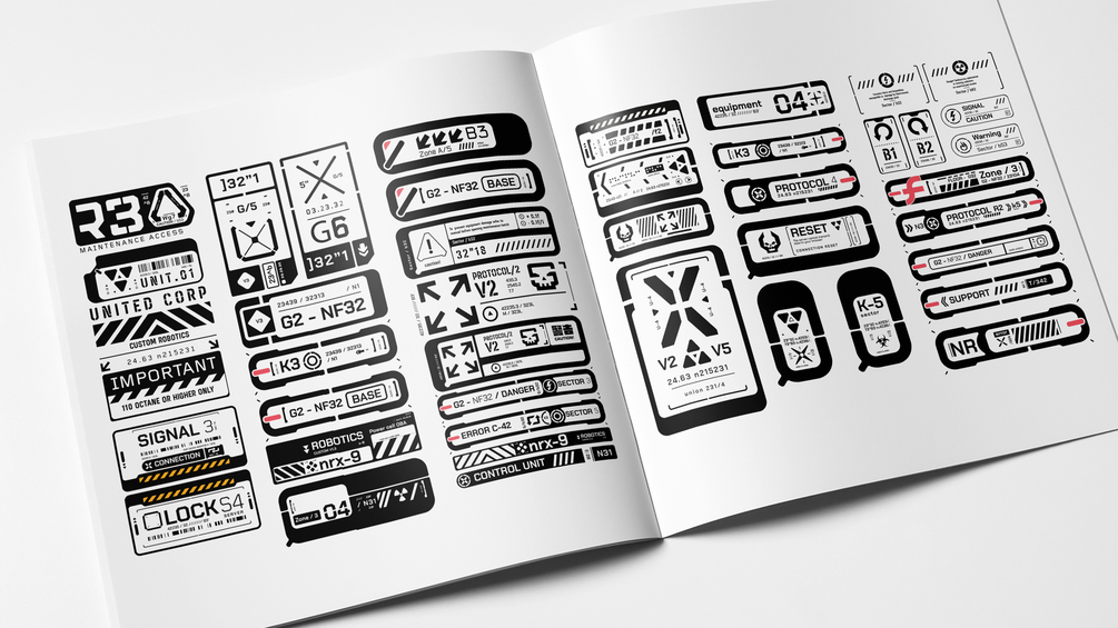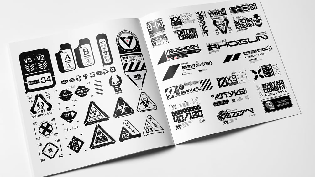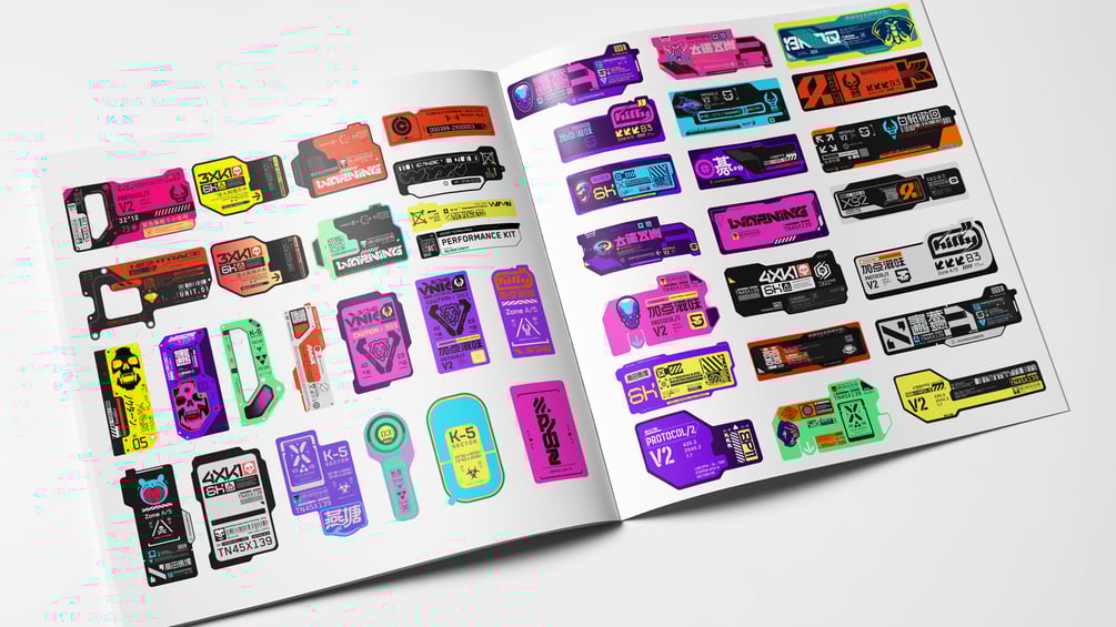 ▲ A massive collection of 343+ high-quality vector cyberpunk decals made of 6 different packs.